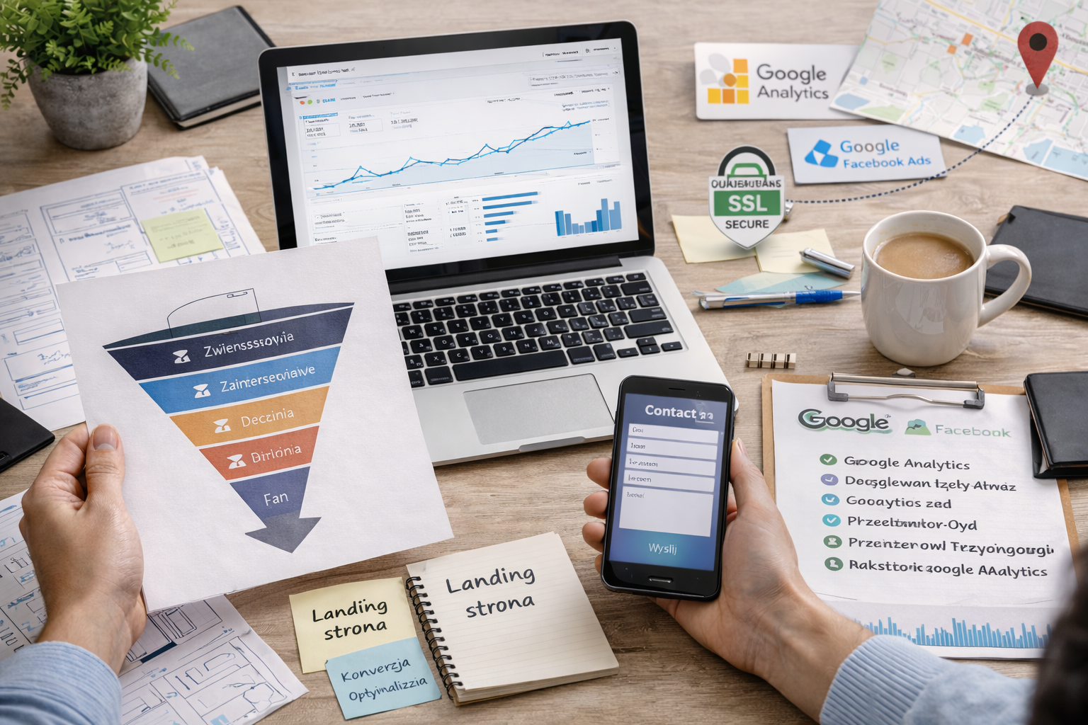 Strona tworzona jest w WordPressie, z indywidualnym projektem wizualnym i uwzględnieniem ścieżek użytkownika. Zawiera formularz kontaktowy, certyfikat SSL, podstawowe SEO oraz automatyzacje. Dodatkowo podpinam Google Analytics, integracje z Google i Facebook Ads oraz wizytówkę z pinezką w Mapach Google.